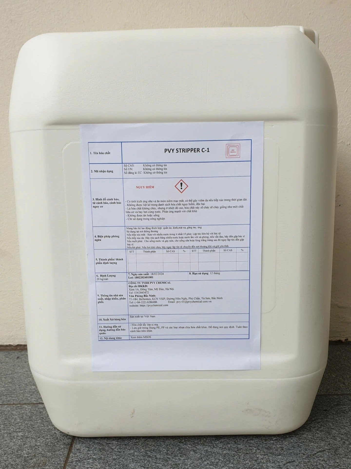 - PVY STRIPPER C Là hóa chất tẩy tẩy điện cho đồ gá (jig mạ) bằng SUS hoặc Titan.
